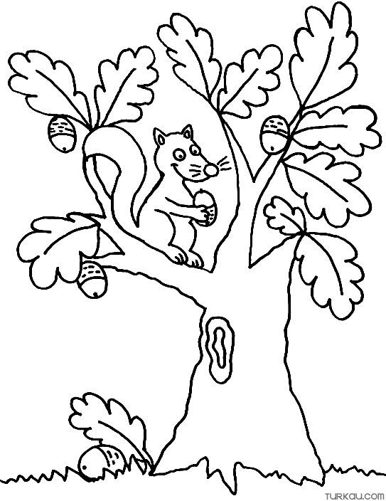 Squirrel, Trees, Fall Coloring Page