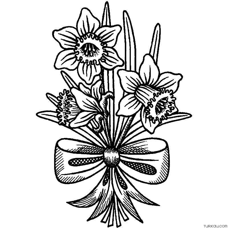 Flowers Daffodils Bow Coloring Page